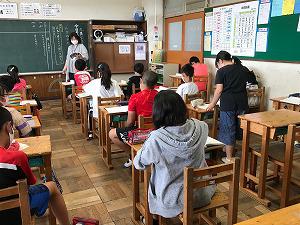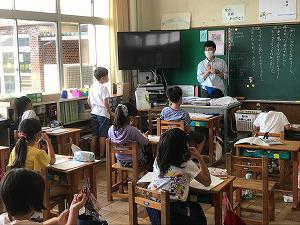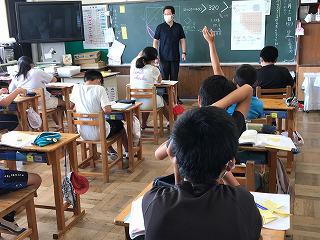 5校時、国語の時間でした。感じの広場という学習で、学校の場面にある漢字を使って短文を作り、発表していました。漢字は使って覚えるものですので、子どもたちは自分が考えた短文を積極的に発表していました。
