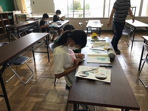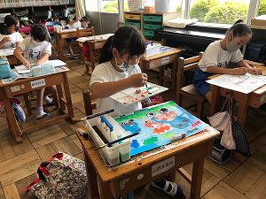 3年生は、4校時図工で下絵を描き終わった約半数の子どもたちは彩色にうつっていました。下絵の子どもたちは、木村先生に見てもらっての彩色です。絵を描くということは、多くの子にとって楽しい時間のようです。仕上がりが楽しみです。