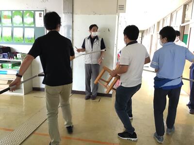 複数人の職員で不審者対応をしている間、他の職員で全校児童を誘導し、安全に体育館に避難させました。