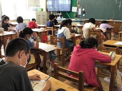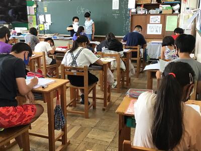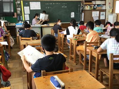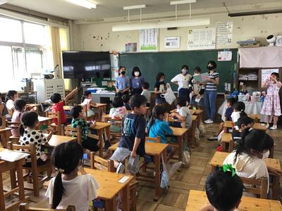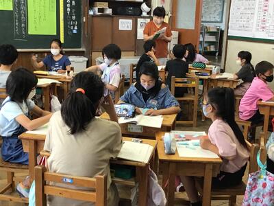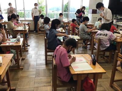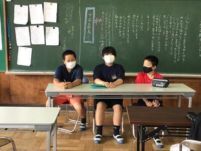 校長からは子供たちに、「早寝、早起き、朝ご飯を心がけて生活のリズムを崩さないこと」「毎日、家の手伝いをすること」「交通事故や水の事故に気をつけて、感染症予防もしっかり行って安全に過ごすこと」の3つを夏休みの宿題として出しました。