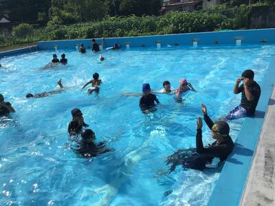 今日は、とても暑い1日でした。まさしく夏本番という感じです。プールサイドの気温は35度まで上がりました。真っ青な空の下、全学年がプールに入りました。今年度は夏休みのプール開放がないため、今日が最後のプール学習になります。大きな歓声をあげて、どの児童も楽しそうに活動していました。