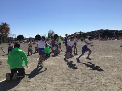 運動会最後の種目の「紅白選抜リレー」です。みんなの代表として、全力でバトンをつないでいます。