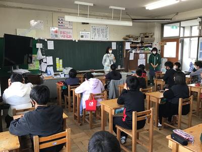 粟野地区学校給食共同調理場栄養教諭の松島先生を講師にお招きし、指導していただきました。