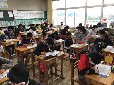 読み手にわかりやすく伝えるために、筆者がどのような書き方の工夫をしているか、個別に考えた後、グループで話し合いました。どのグループも、集中して活発な話し合いが進められていました。授業の終わりには、「時間が足りない」「もっとやりたい」等の声があちらこちらから聞こえてきました。