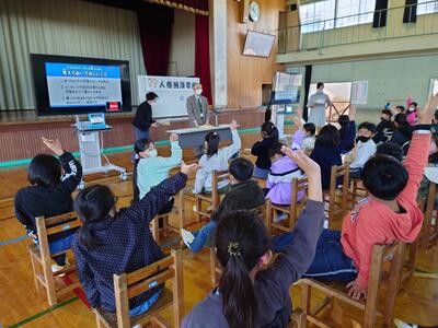 授業の後半には、人権擁護委員の大貫先生、柏木先生からお話を聞きました。ネットが原因による事件が多く起きている中、「自分の命も大切にすると同時に、周りの人の命も大切にしてほしい」という話を、子供たち真剣な表情で聞いていました。