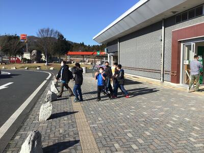 パーキングエリアでトイレ休憩です。ビデオなどを見ながら、ここまで来ました。背筋を伸ばして一息つきます。運転手さんによると、ここからは、あと45分ほどで海浜自然の家に着くとのことです。