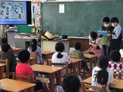 ◯✖️クイズもありました。答えた児童は、見事、正解でした。