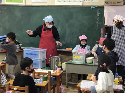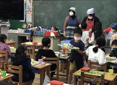 1年生は、他学年より早めに給食の準備を開始していましたが、今では、他学年と同じ時間に給食の準備を始めています。給食当番も、1人1人が任された係をきちんと行っています。