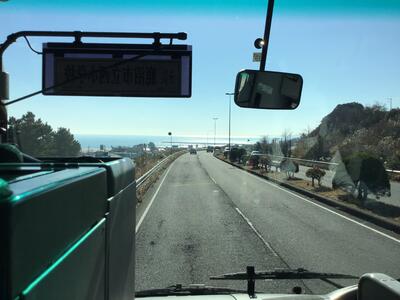 パーキングエリアでトイレ休憩です。ビデオなどを見ながら、ここまで来ました。背筋を伸ばして一息つきます。運転手さんによると、ここからは、あと45分ほどで海浜自然の家に着くとのことです。