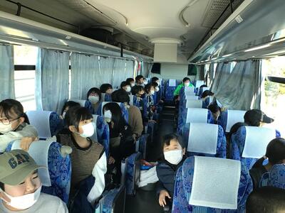待ちに待った臨海自然教室の日になりました。天気もバッチリ晴天に恵まれ、5年生みんな元気に出発です。