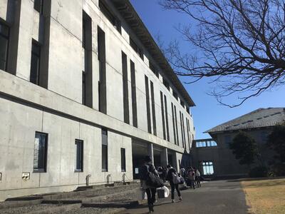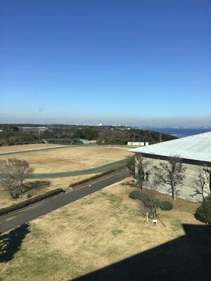 バスの窓から大きな建物が見えた瞬間、歓声があがりました。まずは正面階段で記念撮影。その後入所式へ向かいます。所長さんからお話をいただき、施設の使い方も教わりました。オーシャンビューの素敵な部屋です。4階だけあって眺めは最高です。