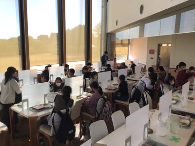 食堂は、コロナ対策でいろいろな決まりがあります。
