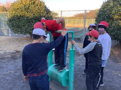 今日(12月23日)は、清掃なしのロング昼休みにして、それぞれの班ごとで遊びました。鬼ごっこや三本線、ドロケイ、ドッジボール、ドッジビーなど、6年生が準備をしてくれたので、みんなが笑顔で楽しめました。