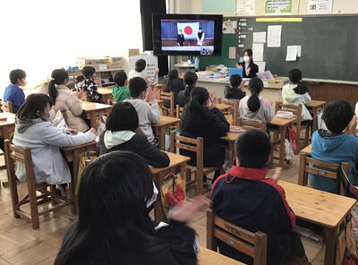 各教室では、2学期の締めくくりとして、しっかりとした態度で終業式に参加することができました。
