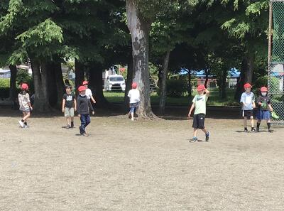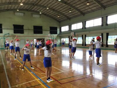 本校の体育の授業では、基礎体力の向上のために、楽しく活動量に満ちた体育授業の展開に努めています。また、積極的に外遊びも奨励して、「健やかな子」の育成を目指します。
