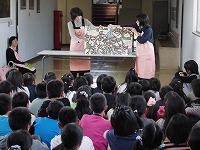 たくさんのお話を、「エプロンシアター」、「パネルシアター」、「大型絵本」などで話して下さり、子ども達は耳だけではなく視覚でも楽しむことができました。どの子も真剣なまなざしで集中してお話を聞き、本の世界に浸っていました。教室で感想を聞くと、とても楽しくて、これからは自分でも本を読んでみたいという子がたくさんいました。