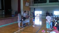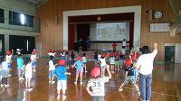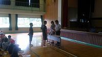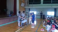 縦割りのなかよし班毎に整列し開会の後、児童代表あいさつ、校長先生から県民の日にちなんだお話があり、係が準備してきたゲームが始まりました。