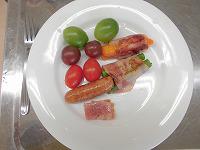 野菜の栄養や彩りも考えてメニューを決め、みんなで協力して調理しました。にんじんをベーコンで巻いたり、オムライスを作ったり、野菜炒めを作ったりと、それぞれの班で工夫された「おかず」が完成しました。
