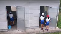 5年生は、プールサイドの草取りと掃き掃除、更衣室やトイレの掃き掃除と拭き掃除を担当しました。