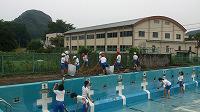 まず、3時間目に5年生と6年生が先頭を切ってプールに入りました。初泳ぎのため少し水が冷たく感じたようでしたが、元気いっぱいに泳いでいました。全員で力を合わせて、同じ方向に泳いでプールの水を回し、「流れるプール」もつくりました。