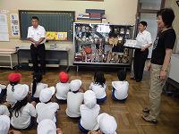 一段落して、全校児童が体育館に移動し、学校長の話を聞きました。実際に竜巻が来たら、どう行動したらいいか自分で判断すること、そのためには口を結び、校内放送や職員の指示の内容をしっかり聞き正しい情報をキャッチすること、さらに、避難場所はその時の状況で変わるので、落ち着いて行動することなどが話されました。