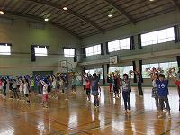 応援団は、応援の最終チェックを行いました。元気いっぱい、気合いの入った声が体育館に響き渡りました。
