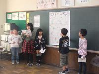 また、4時間目のクラス発表では、国語・算数・音楽・生活科など、班ごとの発表や「きらきらぼし」の合奏などを行いました。今まで学習してきたことをがんばって発表することができました。