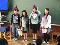 外国語:今までに覚えた英語の表現を使った「ハロウィーンパーティに行こう」という創作劇を演じました。