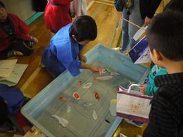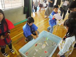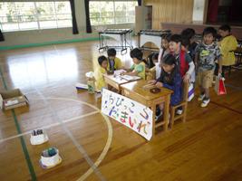 今日は学習発表会でした。2年生は「生活科」の学習をもとに、1年生を体育館に招いて、「ちびっ子まつり」のお店(模擬店)を開きました。