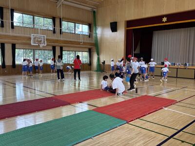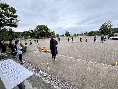伝言ゲームの後、県民の歌を歌いましたが大きな声で歌う姿に感動しました。子どもの力はすごいですね。