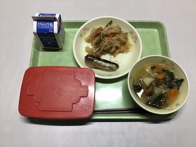ごはん ぎゅうにゅう いわしのうめに きりぼしだいこんのにもの じゃがいものみそしる
