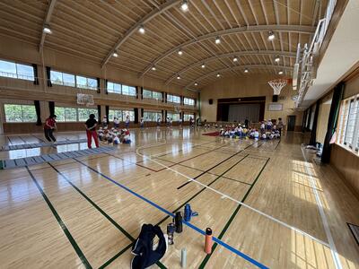 本日3校時、実行委員会の企画・運営による県民の日集会が開かれました。1年生から6年生までの縦割り班で伝言ゲームを行いました。無事に伝言が成功したチームにはおおきな拍手が送られていました。