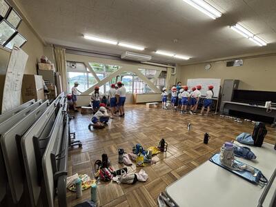 昨日が雨天のため順延した体力テストを本日実施しました。昨日の雨の影響はほぼなく、ちょうどよいコンディションで実施できたと思います。学年ごとの実施ではなく、6年生と1年生、5年生と2年生、4年生と3年生がそれぞれペアを組んで、上級生が下級生の面倒を見る形で実施しました。上級生の活躍がとても微笑ましいです。暑い中お疲れ様でした。