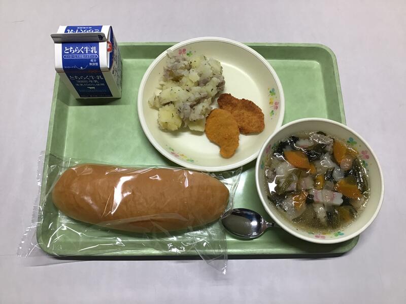 ミルクパン ぎゅうにゅう チキンナゲット ジャーマンポテト ワンタンスープ
