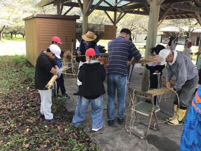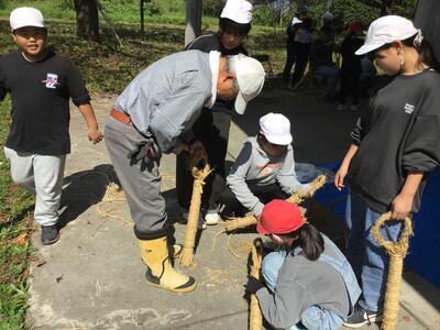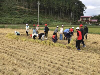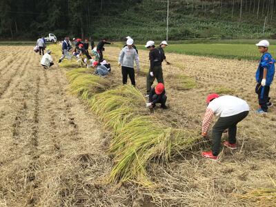 5月に田植えを体験した5年生が、『ふれあいみどりの村』の方々にご指導をいただきながら、下沢引田農村公園で稲刈りと藁鉄砲作りに挑戦しました。稲刈りでは、刈る、束ねる、はぜがけにする一連の作業をしました。なれないながらも一生懸命取り組み、最後の頃はうまく刈ることができるようになりました。藁鉄砲作りでも苦労しながらなんとか自力で取り組もうと頑張りました。みどりの村の方々のご好意で1人1本ずつ持ち帰りました。