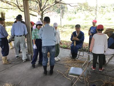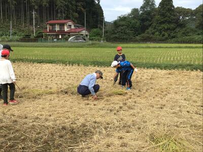 9/25(木)5年生 稲刈りと藁鉄砲作りを体験しました