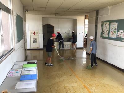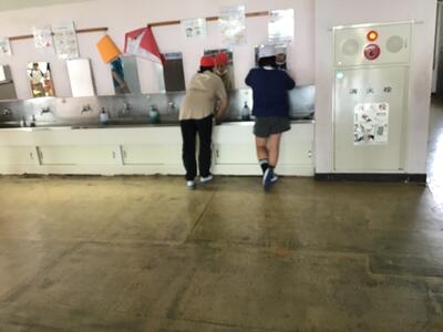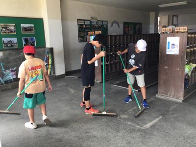 懇談期間中は昼休みの時間を利用して、帰りの会と自教室の清掃を行います。今日は6年生が昇降口やトイレ、階段、廊下などの清掃をしていました。