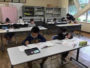 6日ぶりの学校です。5年生は、2校時国語の学習でした。「たずねびと」という単元で、広島に着いてからの「綾」の気持ちを考える学習です。