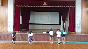 今週予定されている「県民の日集会」に向けて、業間、昼休みを使ってリハーサルが行われました。代表委員児童が準備を進めてきたものを、実際の場面を想定して行いました。頑張って準備を進めてきましたが、いざやってみると、まだ足りない部分があることに気付きました。代表委員児童も本番までにやるべきことがはっきりしたようでした。