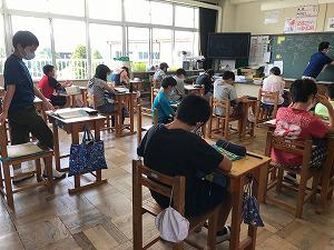 2校時国語で秋の俳句を考え、短冊に清書をしていました。一人1首をサインペンで仕上げたり、余白に絵で情景を表したりしていました。全員の作品が掲示されるが楽しみです。