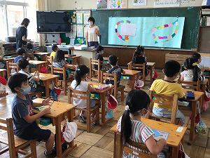 1組では、国語の「やまなし」の学習でした。やまなしの十二月の場面について学んでいました。積極的に自分の考えや意見をしっかり述べていました。