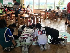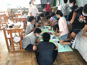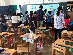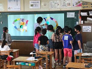 引田の神山さんが大きな紙に魚を書いてきてくださいました。うろこのない魚です。この魚に、「うろこ」の紙に夢や願い、感謝などを書いて貼っていきます。コロナ禍での50周年記念行事の一つとして、学年・学級毎に仕上げていきます。一人ひとり「うろこ」に西小50周年や自分のことへの夢や願い、感謝などを書いて大きな魚をみんなで仕上げることができました。