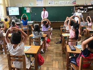 2年生は、2校時算数の学習で、担任の菱沼先生、学力向上担当の加藤先生、支援の川田先生の3名の先生方に教えてもらいました。まとめの後の復習をする場面でした。数直線に数字を書く問題やdL、L、mLの問題、足し算・引き算の問題です。分からない子に寄り添いながら、丸をつけながらです。頑張っていた2年生でした。