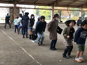 今日の午前中に、ふれあいウォークが開催されました。生憎の雨のため、出会いの森のゲートボール場での活動になりました。子どもたちや保護者の皆さん、地域の方々です。東大芦コミュニティ推進協議会の寄川会長のあいさつで始まりました。ふれあいウォークの代わりにストレッチのしかたを学びました。