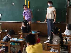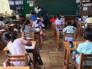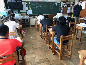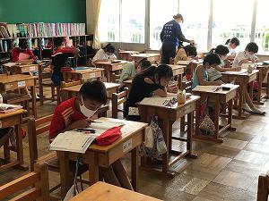 3年生は、4校時算数の確認のプリントに取り組んでいました。担任の木村先生が一日出張でしたので、市村先生との学習でした。