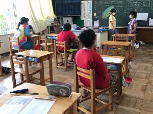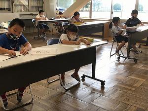 1年生は5校時、国語でした。「やくそく」の音読です。1文ずつ読み進めていました。その後、カタカナの確認です。さらだをサラダ、すうぷをスープに書き表すことができるかどうかです。半数の子は自力でかけていたようですが、半数の子は先生と一緒に取り組んでいました。学習も本格的になってきています。