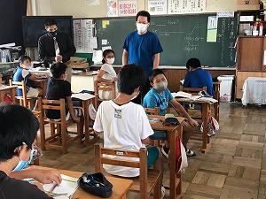 6年生は、2組ではパソコン室にて総合的な学習の時間でした。タブレットを使って、調べ学習をしていました。昼休みに応援団長を希望する6年生が体育館に集まって、自分の思いをアピールしていました。6名の中から選ばれる予定です。