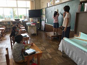 4校時はALTのチャールズ先生との外国語活動でした。手に消しゴムをもって頭の上に置き、わずかに映ったTVの画面から分かるとすばやく消しゴムをあう絵に置く活動です。楽しく外国語活動を学んでいました。