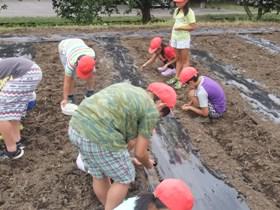 秋には大きく生長した大根の様子を思い浮かべながら、種の上に土をかぶせました。収穫祭に立派な大根に成長するよう、みんなで世話をがんばりたいと思います。