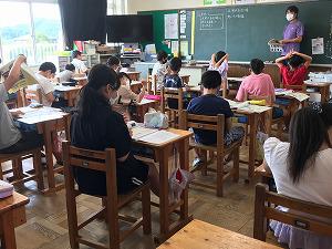 6年生は、2組ではパソコン室にて総合的な学習の時間でした。タブレットを使って、調べ学習をしていました。昼休みに応援団長を希望する6年生が体育館に集まって、自分の思いをアピールしていました。6名の中から選ばれる予定です。